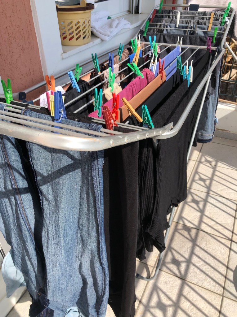 - I dry my clothes on the balcony. In winter, this can prove to be a challenge. The weather in Greece is similar to the Southern U.S. – rainy, cold and humid. With only a few hours of sunlight on my balcony each day, I have to take full advantage of this time and have clothes ready to dry by 10 a.m. I am used to washing and drying clothes at night, so this is a big change. Also, without a dryer, there’s no guarantee my clothes will dry in time so I have to again plan ahead. It’s a lifestyle change that I actually like. Don’t get me wrong, there’s nothing like a dryer to get your jeans fitting perfectly, but in the context of a new life, drying clothes outside represents a return to a way of living that is less of a testament to man’s power over nature but rather an acknowledgement of man’s need to work in harmony with nature. Again, I love it.